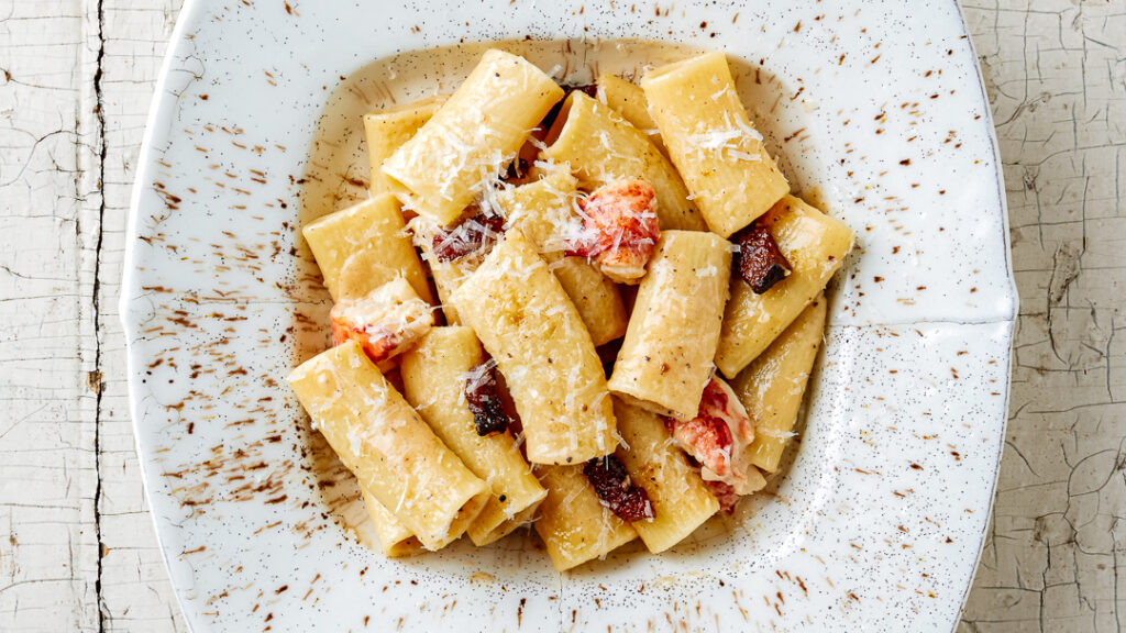 La Gricia est la plus ancienne des pâtes romaines : une carbonara sans œuf ou une amatriciana sans tomate. C'est juste du guanciale, du pecorino, du poivre noir et de l'eau de pâtes. Certains disent que c'est la véritable pâte des bergers avant l'ajout de tomates ou d'œufs. Bien qu'elle soit la base des pâtes romaines, elle reste la moins célèbre, éclipsée par ses descendantes.